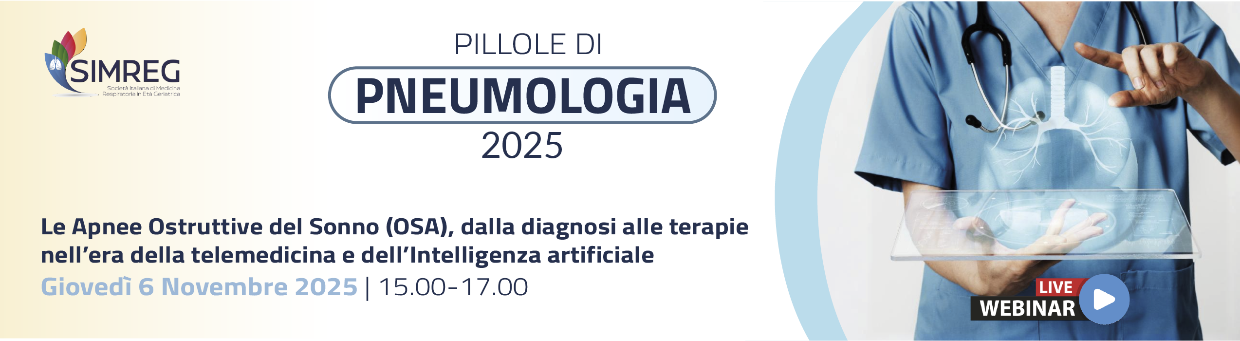 PILLOLE DI PNEUMOLOGIA - LE APNEE OSTRUTTIVE DEL SONNO (OSA), DALLA DIAGNOSI ALLE TERAPIE NELL’ERA DELLA TELEMEDICINA E DELL’INTELLIGENZA ARTIFICIALE dal 06/11/2025 al 06/11/2025